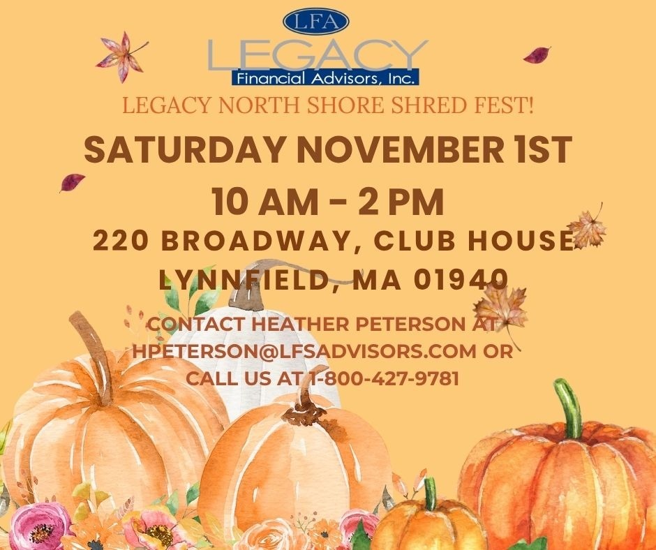 Join the Legacy Team at 220 Broadway, Club House, Lynnfield, MA to shred all of your sensitive documents!